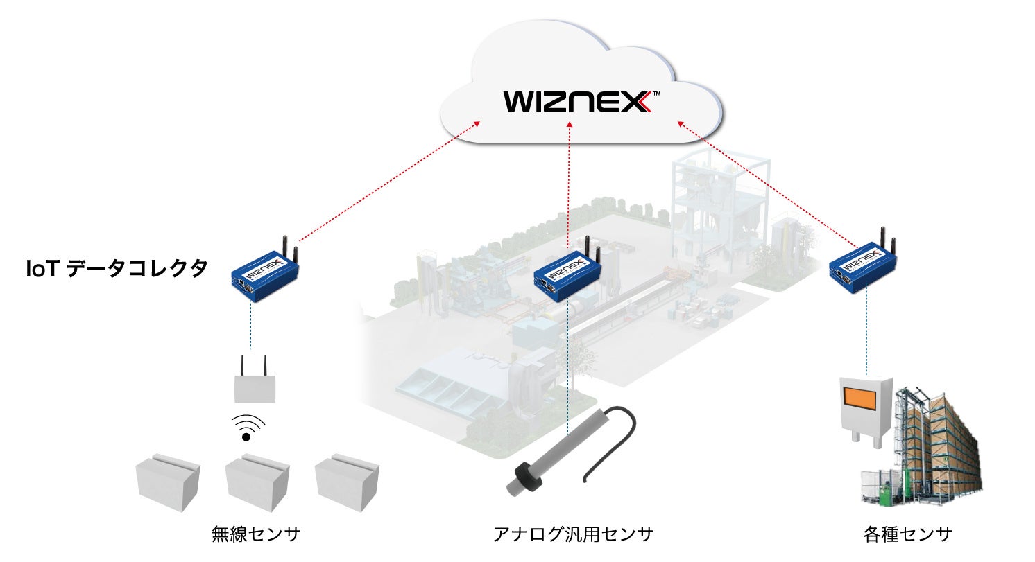 PLCからは取得できないモータの振動や温度等のデータは、無線センサを通じて収集が可能です。
