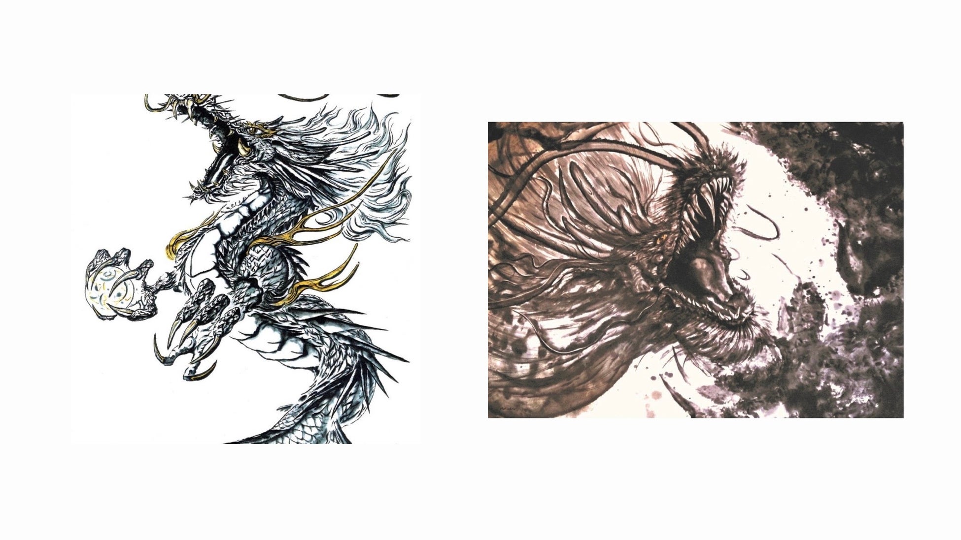 主に龍のアートを描いており、鱗や爪先、龍の感情などの細部までにこだわり