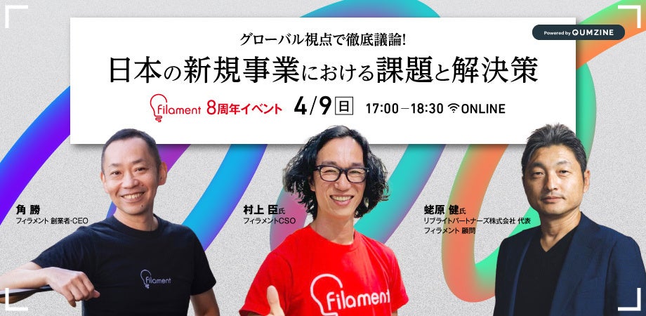蛯原氏の顧問就任とフィラメント創業8周年を記念し、オンラインイベントを開催します。イベントの概要はフィラメントのオウンドメディアQUMZINEにて公開中です。