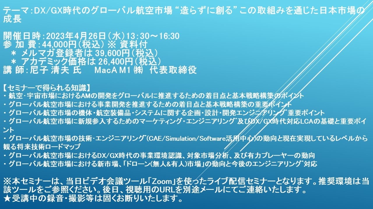 ・ グローバル航空市場に新規参入するためのマーケティング・エンジニアリング゙及びDX/GX時代対応LCAの基礎と重要ポイント