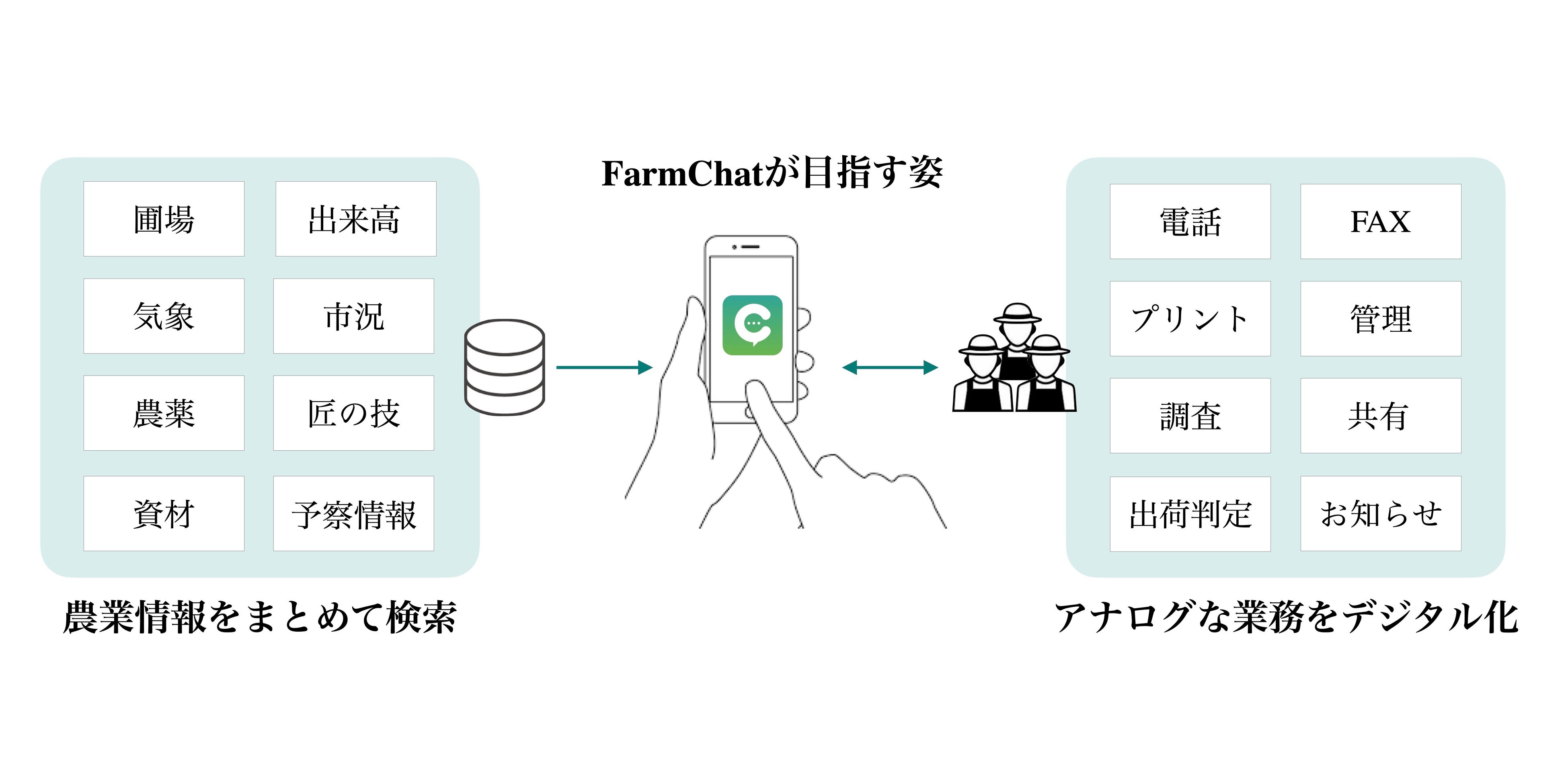 「FarmChat」は、農業者はもとより農業に関わる全ての人々向けのビジネスチャットツールです。これまで紙や電話でやりとりすることがほとんどであった農業分野の業務運用を効率化し、様々なデータ連携機能を利用して営農業務をサポートします。 ※ホームページURL:https://farm-chat.com/