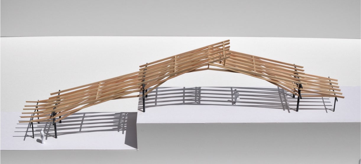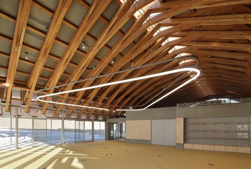丹波山村新庁舎は、村の中央を東西に貫く青梅街道に面して建てられています。村に住む⼈、⼭を訪れる⼈、街道を通りすぎる⼈、様々な⼈が⾏き交うこの場所に、村のシンボルとなるカラマツ集成材の大屋根をもつ庁舎が誕生します。村民と登⼭客や⻘梅街道を通る⼈が触れ合い、語り合えるような開かれたイメージをもつ2階建ての建物です。