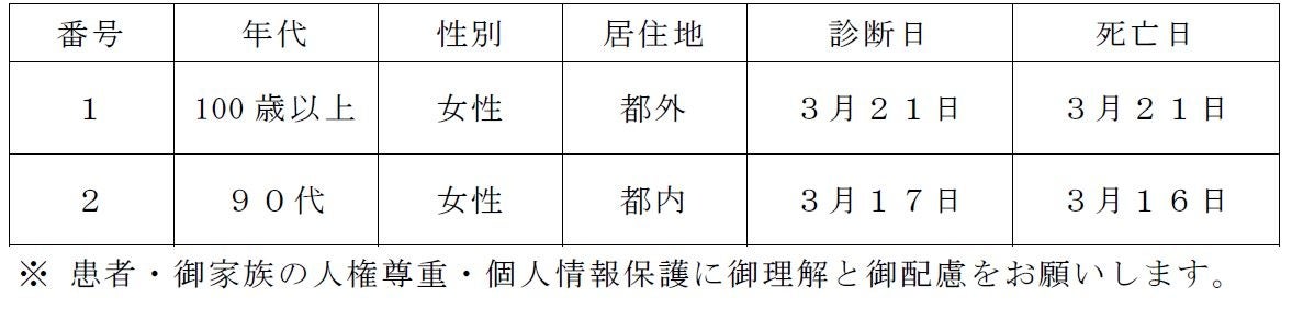 新型コロナウイルスに関連した患者の死亡について business Twitter Facebook はてブ Pocket LINE コピー 2023.03.27 この記事は約1分で読めます。 都内で新型コロナウイルスに感染した方が死亡されましたのでお知らせします。 お亡くなりになった方のご冥福をお祈り申し上げます。 1 新型コロナウイルスに関連した死亡者(本日公表分) 2 新型コロナウイルスに関連した死亡者の累計 8,053人