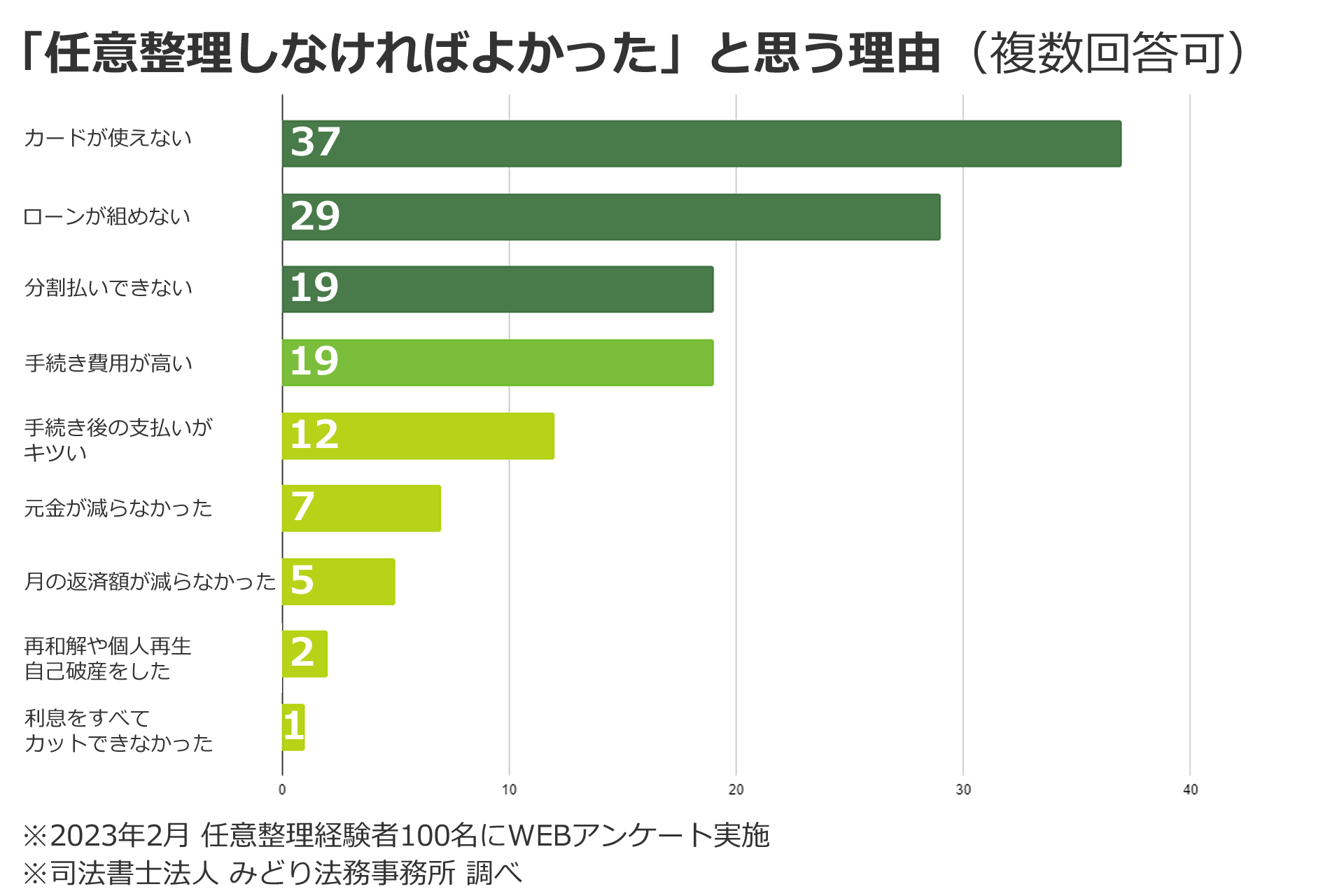 アンケート結果の詳細、任意整理を後悔しないためのポイントを下記の記事にまとめました。