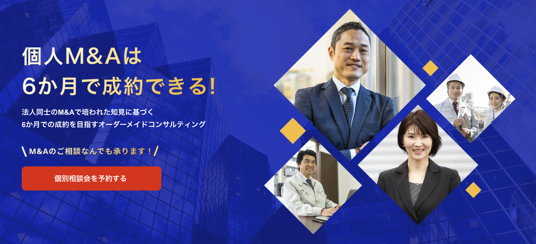 累計1,000億円超のM&Aの成約を実現した現役M&Aコンサルタントが、戦略立案から成約まで個人の買い手に伴走します。