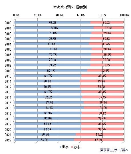 休廃業・解散した企業の54,9%が黒字
