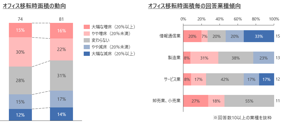 オフィス移転時面積は「増床」がやや優勢も「減床」の動きが増加、面積動向は均衡・多様化の様相