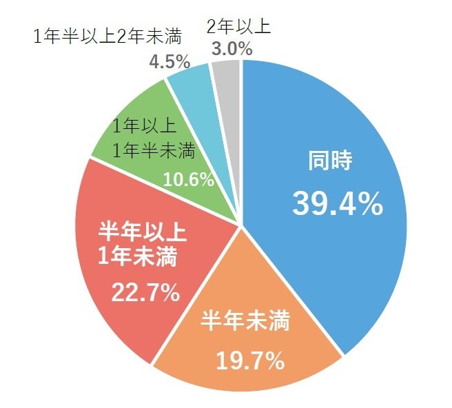 妊活を始めたと同時に不妊治療クリニックに通い始めた方が最も多く、39.4%という結果でした。また、全体の約8割の方が1年未満で不妊治療クリニックに通い始めていたことがわかりました。
