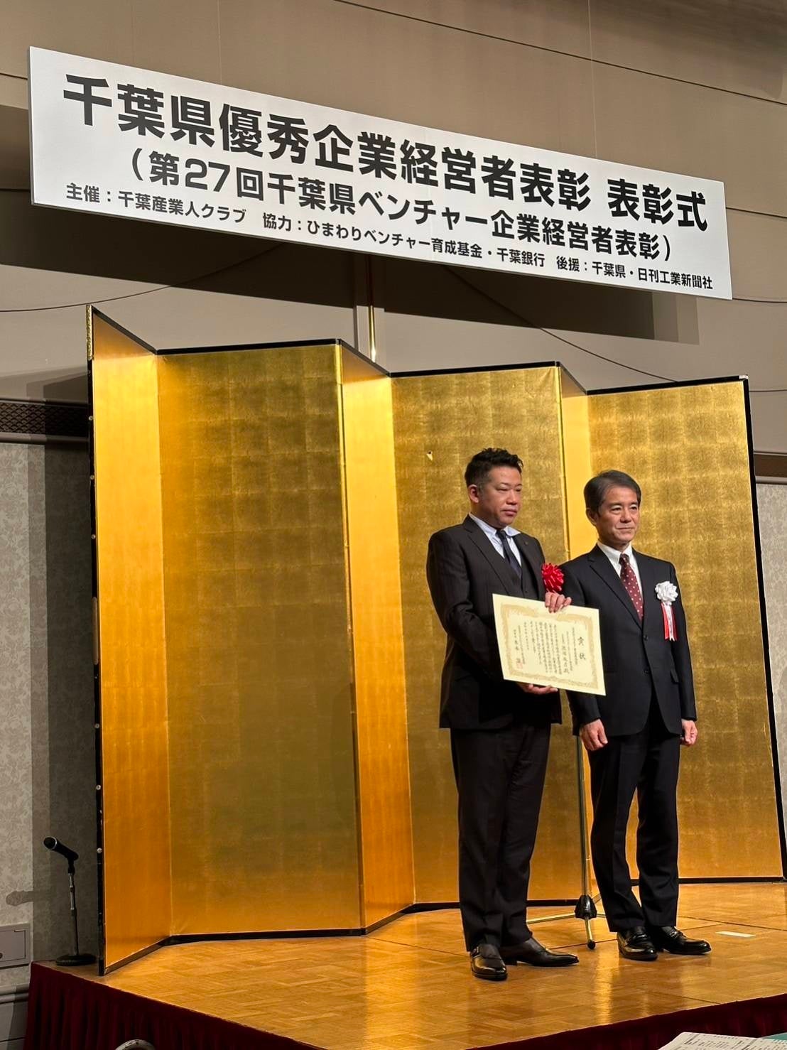 「千葉県優秀企業経営者表彰」は、県内中堅・中小企業の振興を目的に、優れた経営手腕を発揮された企業経営者を表彰する制度です。