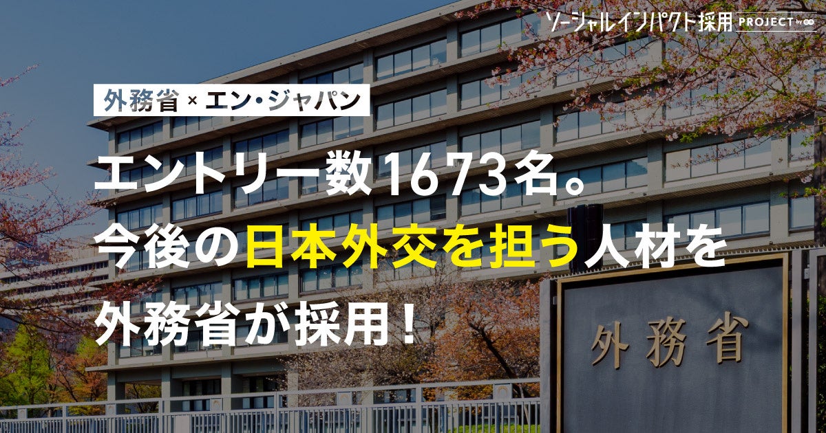 外務省は今回、エン・ジャパン社の協力を得て、総合職相当・専門職相当の経験者採用にかかる求人を初めて大規模に展開いたしました。反響も大きく、結果としてたくさんの方に応募いただき、豊富な実務経験と外交への強い意欲をお持ちの方々を数多く、新しく外務省にお迎えできることになりました。
