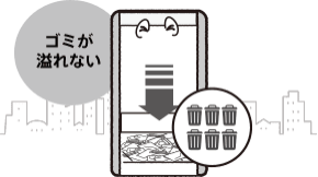 ゴミが一定量貯まると、自動で圧縮機能が作動。およそ5倍に圧縮し、1台に600リットルのゴミを溜めることが可能なため、ゴミ箱が溢れることがなくなり、街の清潔さを保つことができます。