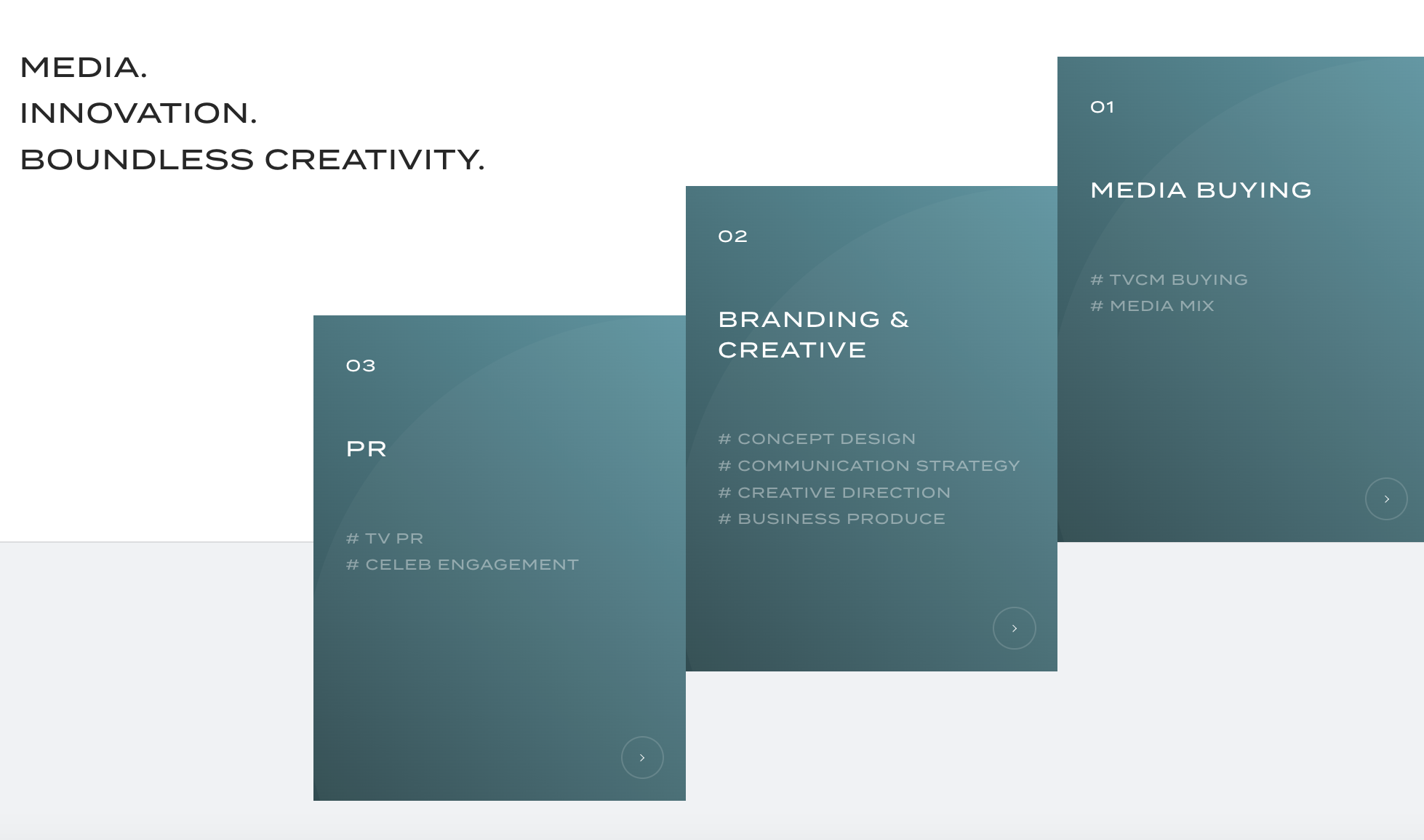テレビメディアに長年携わったプロがテレビCMの活用を軸に、長期を見据えた効率的なバイイングをご提案いたします。Quality・Speed・Analysisの3つを強みとし、戦略立案から施策実行、分析から改善までPDCAを通して事業展開をサポート。大手広告会社でないとバイイングできないとされてきたテレビCMも全国全局のテレビ局に対して直接バイイングが可能です。その道のプロがワンストップで中心となり進めるので、実績に裏付けられた安心感と、コスト・時間・クオリティと様々な面で、どこよりも効果的な結果に導きます。今までにない、クライアントとワンチームとなり未来を見据える新たなテレビバイイングを実現します。