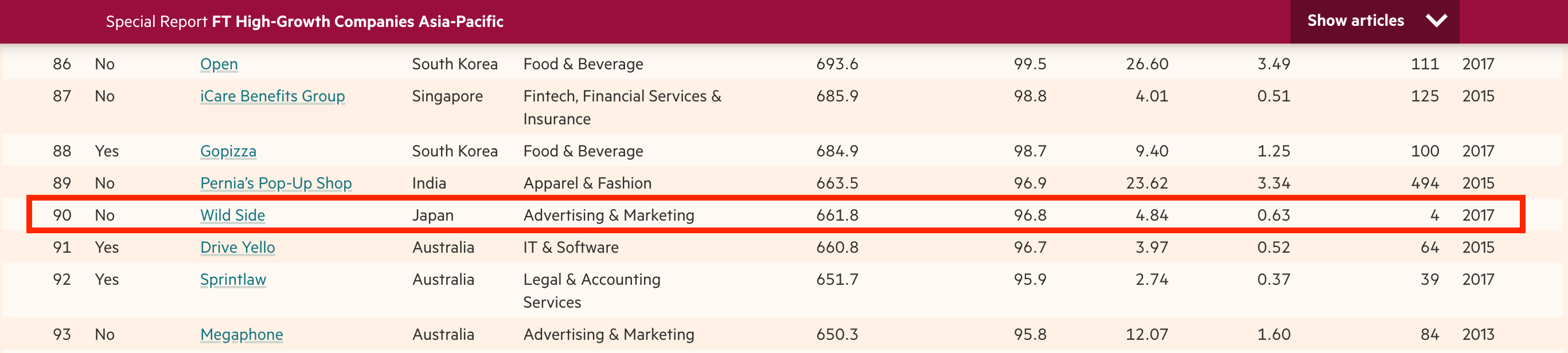 アジア太平洋地域急成長企業ランキング:90/500位