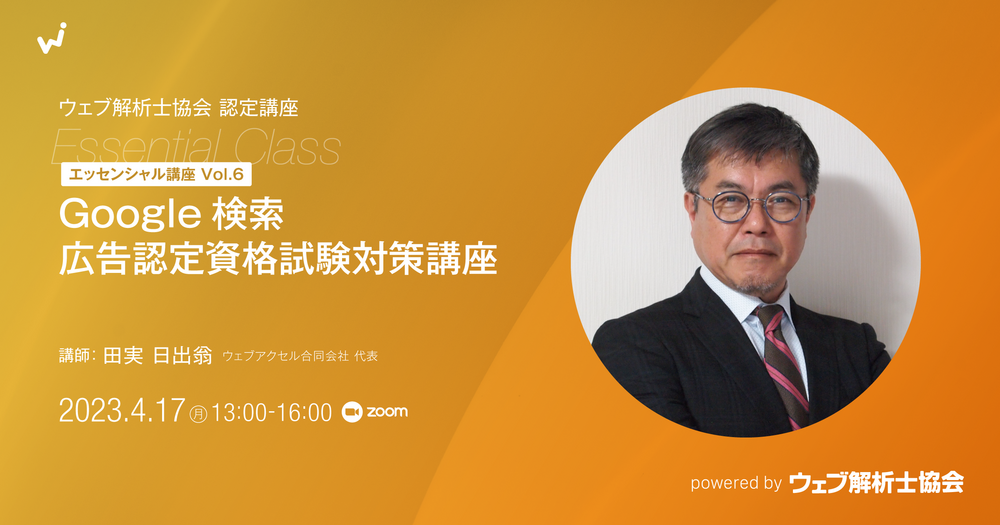【エッセンシャル講座 Vol.6】【増席】Google検索広告認定資格試験対策講座