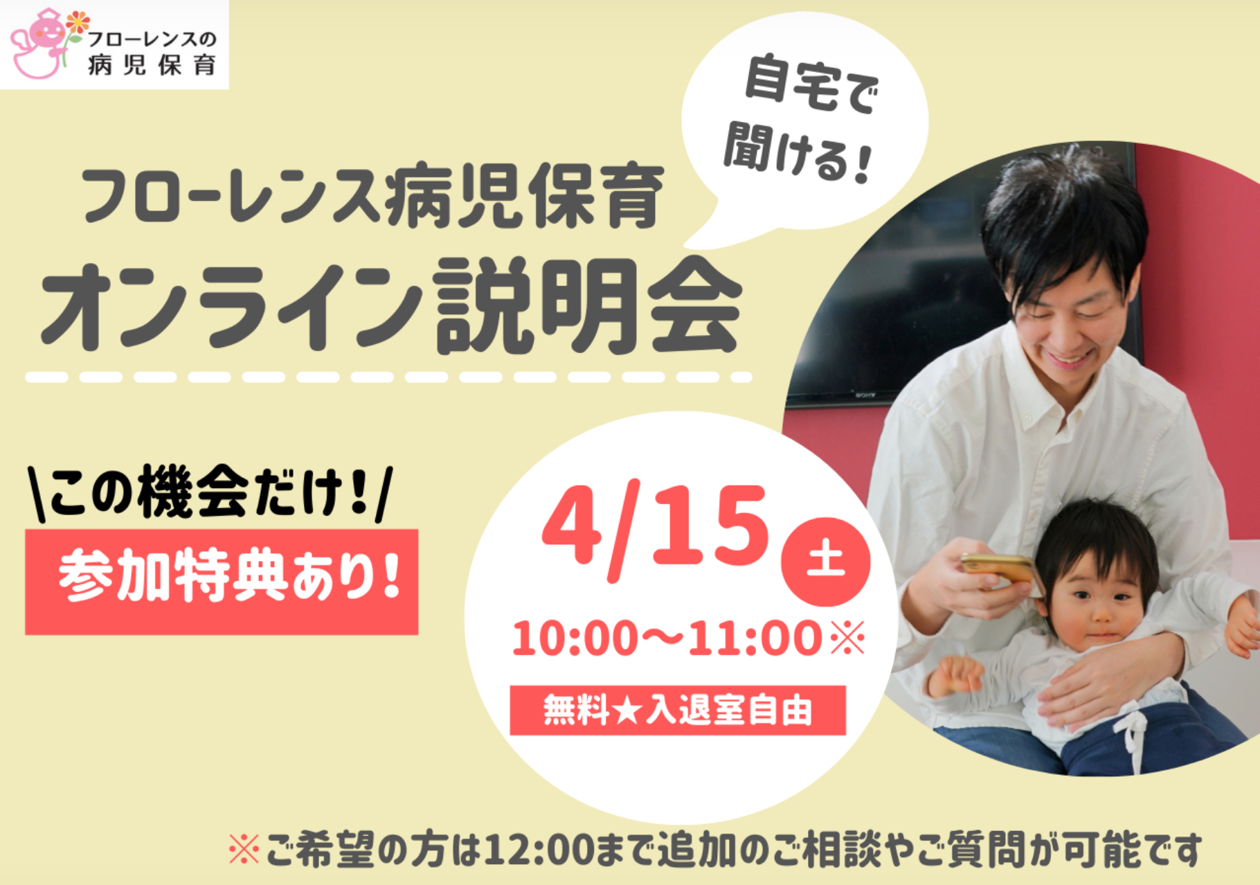 - ご入会前の疑問を解消!4/15(土)フローレンス病児保育オンライン説明会開催!