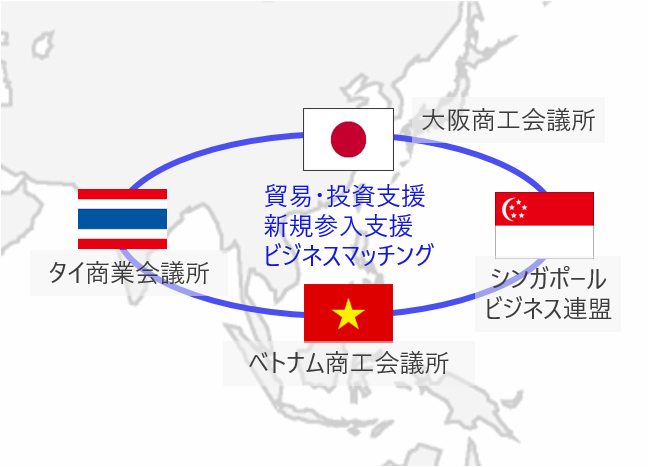 なお、「アセアンビジネス促進プラットフォーム」は、シンガポール、タイ、ベトナム及び大阪の4商工会議所・経済団体による連携を通じて、会員企業間の国際ビジネス展開を支援するもので、対象国は今後アセアン各国に拡大予定です。
