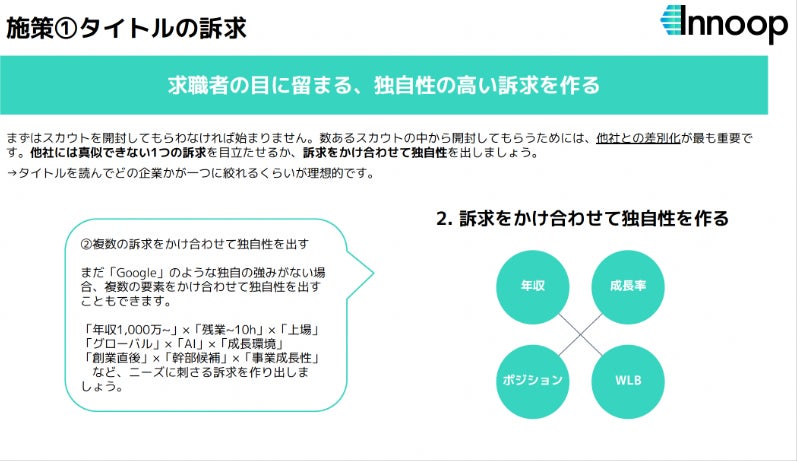 そこで今回、50社以上のスカウト採用を支援しており、過去にはスカウト応募数を18倍に引き上げた実績もあるイノープ株式会社が、実際に試してみて効果があった施策を限定公開いたします。