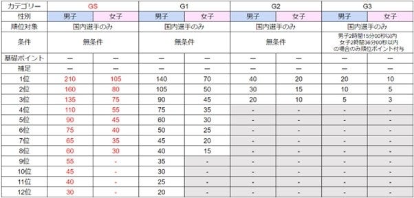 ・日本代表派遣大会のうち4大会は、記録ポイントとして基礎ポイントを配分する。