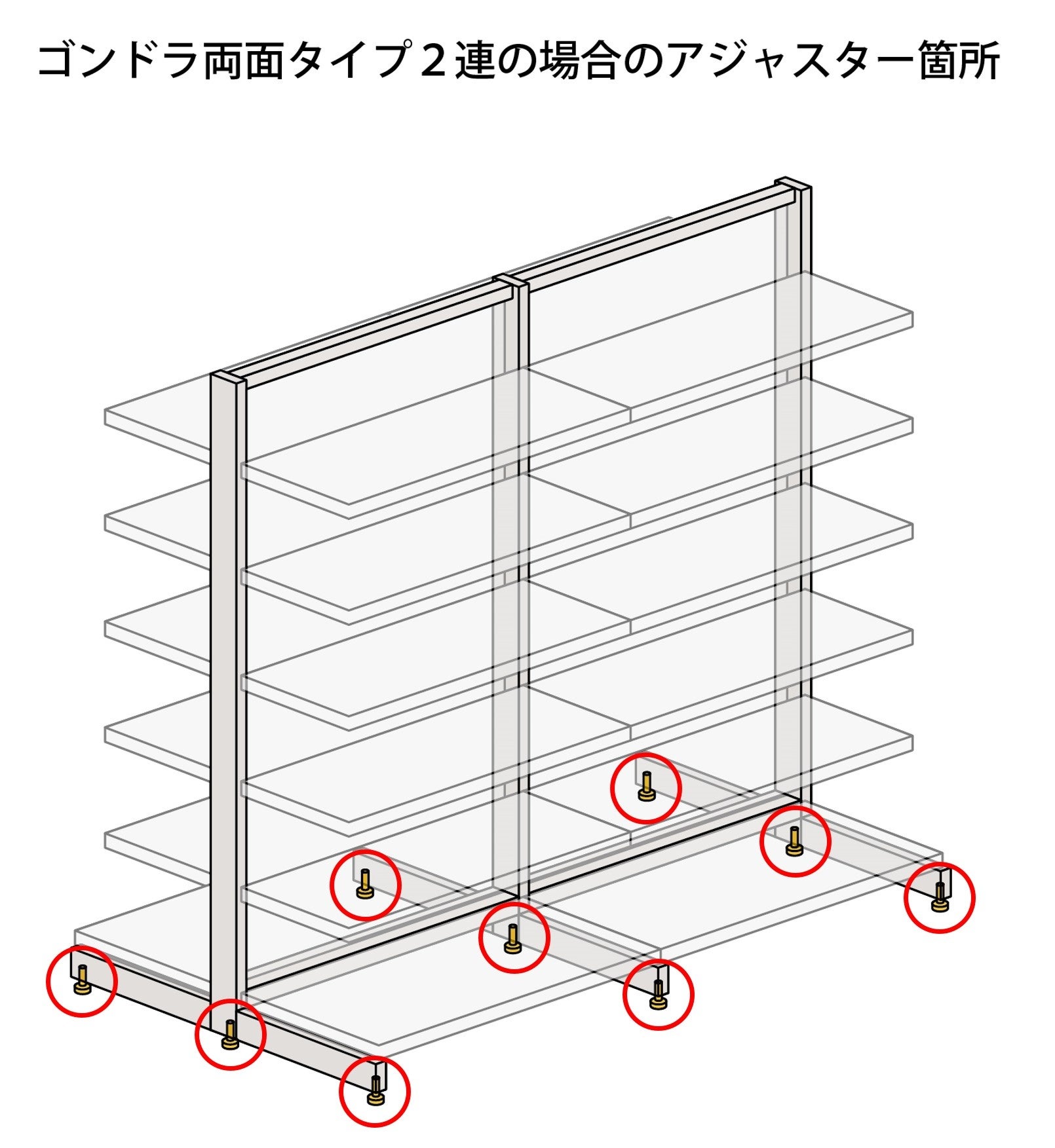 ゴンドラに複数ある全てのアジャスターに取り付けることで免震効果を発揮します。