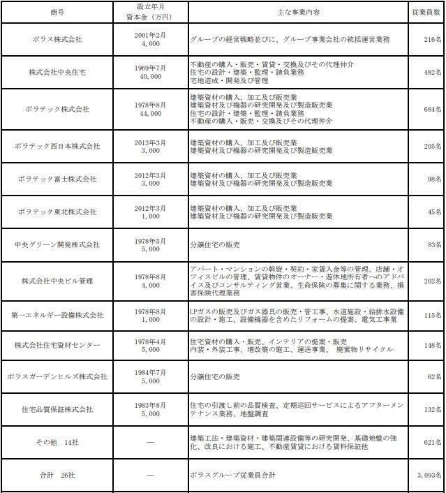 当社はグループ 26 社により住宅の設計、施工及び請負並びに住宅の分譲・不動産の売買、仲介、 賃貸借、管理及びそれらに関連する事業活動を行なっております。各社別概要は以下の通りです。