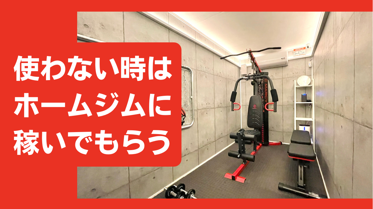 空いた車庫、余っているシャッターガレージ、そこにジムを設置、使用していない時間は貸し出して収益の得られる予約決済サービスです。