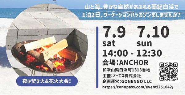 オーエス株式会社(本社:大阪市北区、取締役社長:高(※1)橋秀一郎)は、和歌山県白浜町にて当社が運営するリゾートサテライトオフィスビル「ANCHOR(アンカー)」において、1泊2日の短期間でアプリ開発体験ができる「ワーケーションハッカソン」を7月9日(土)・10日(日)に開催いたします。