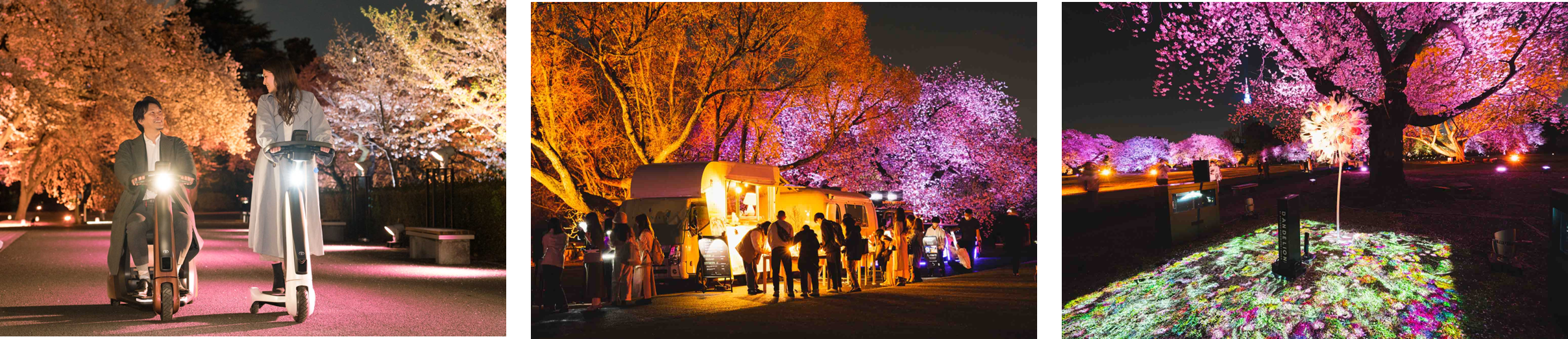 また、トヨタの小型モビリティ「C⁺walkシリーズ」に乗りながら光のアートを楽しめる『桜の通り道 collaboration with トヨタ C⁺walkシリーズ』の体験ゾーンも登場。本イベントでしか体験できない新しいお花見体験の実現を目指します。