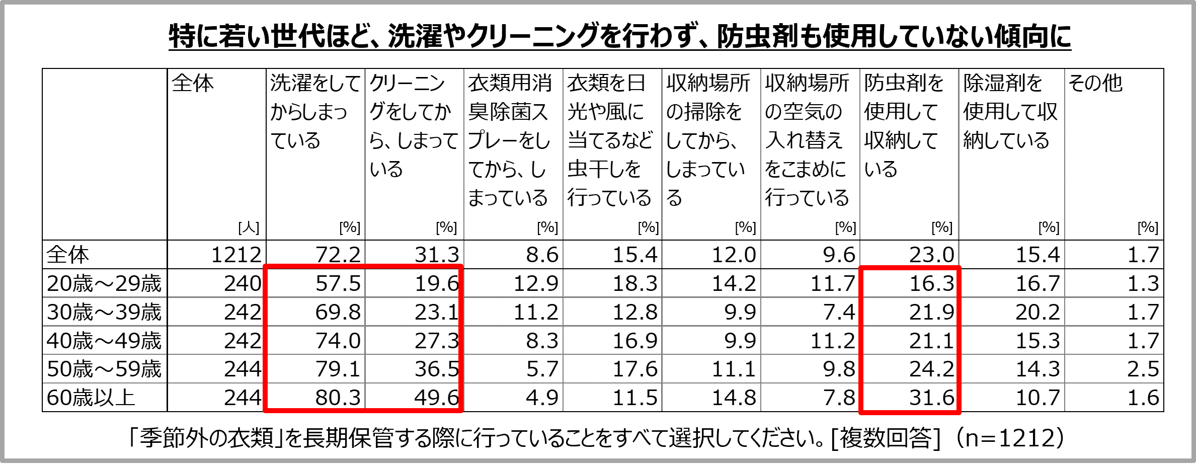 特に若い世代ほど、洗濯やクリーニングを行わず、防虫剤も使用していない傾向に