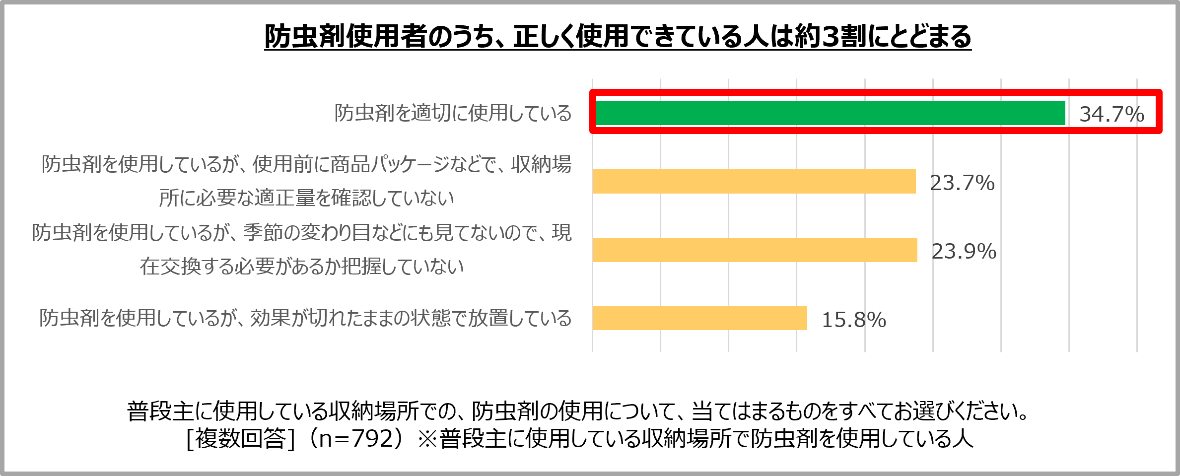防虫剤使用者のうち、正しく使用できている人は約3割にとどまる