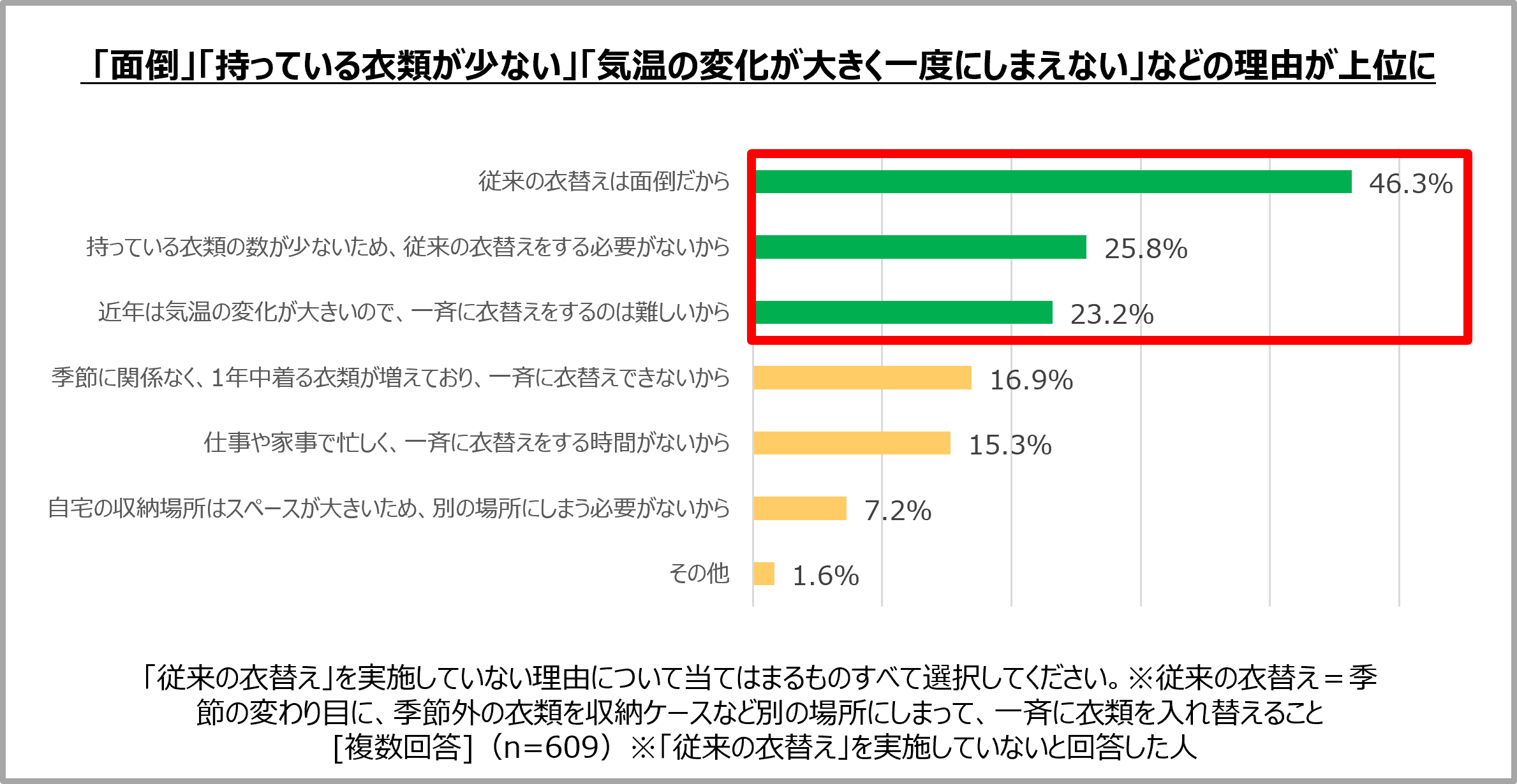 「面倒」「持っている衣類が少ない」「気温の変化が大きく一度にしまえない」などの理由が上位に