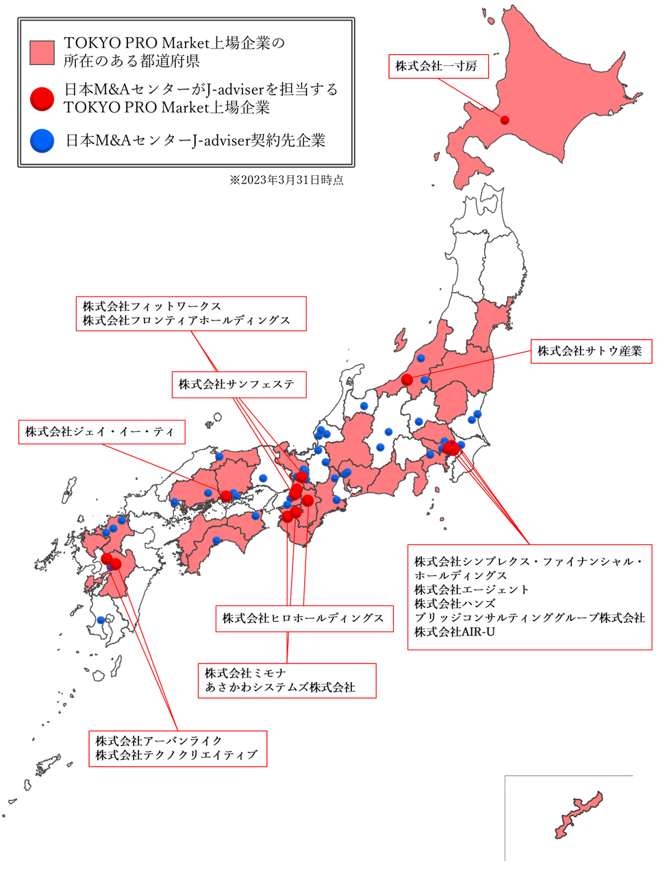 TOKYO PRO Market上場企業および日本M&AセンターJ-adviser契約先企業の状況