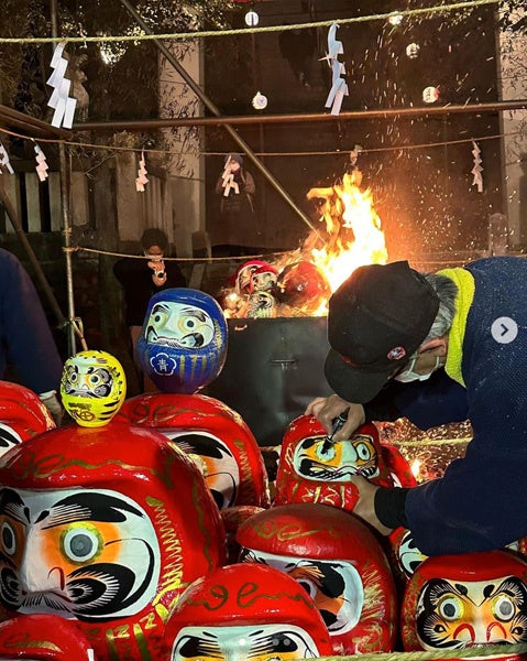 審査員からのコメント:舞い上がるお焚き上げの炎が、新春の市の楽しさを感じさせます。役目を終え両目が入っただるまたちは、心なしか満足気ですね。