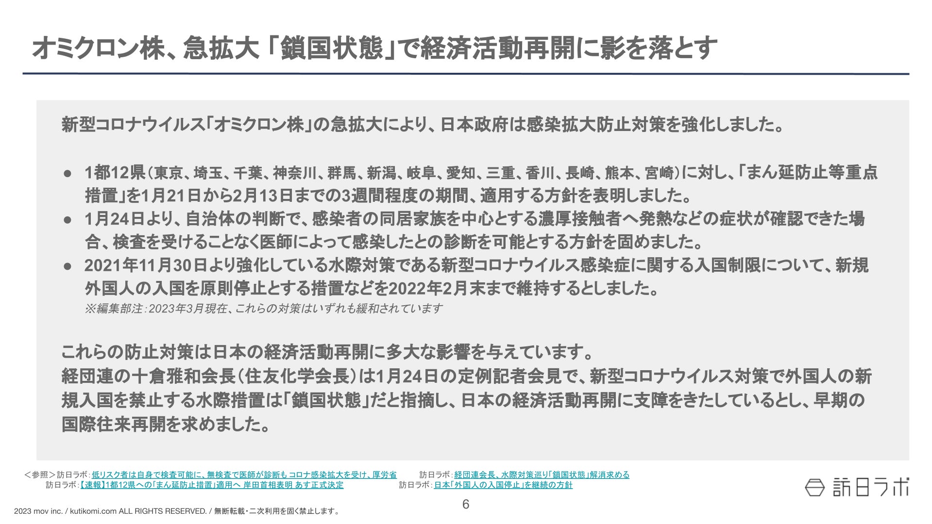 • オミクロン株、急拡大 「鎖国状態」で経済活動再開に影を落とす