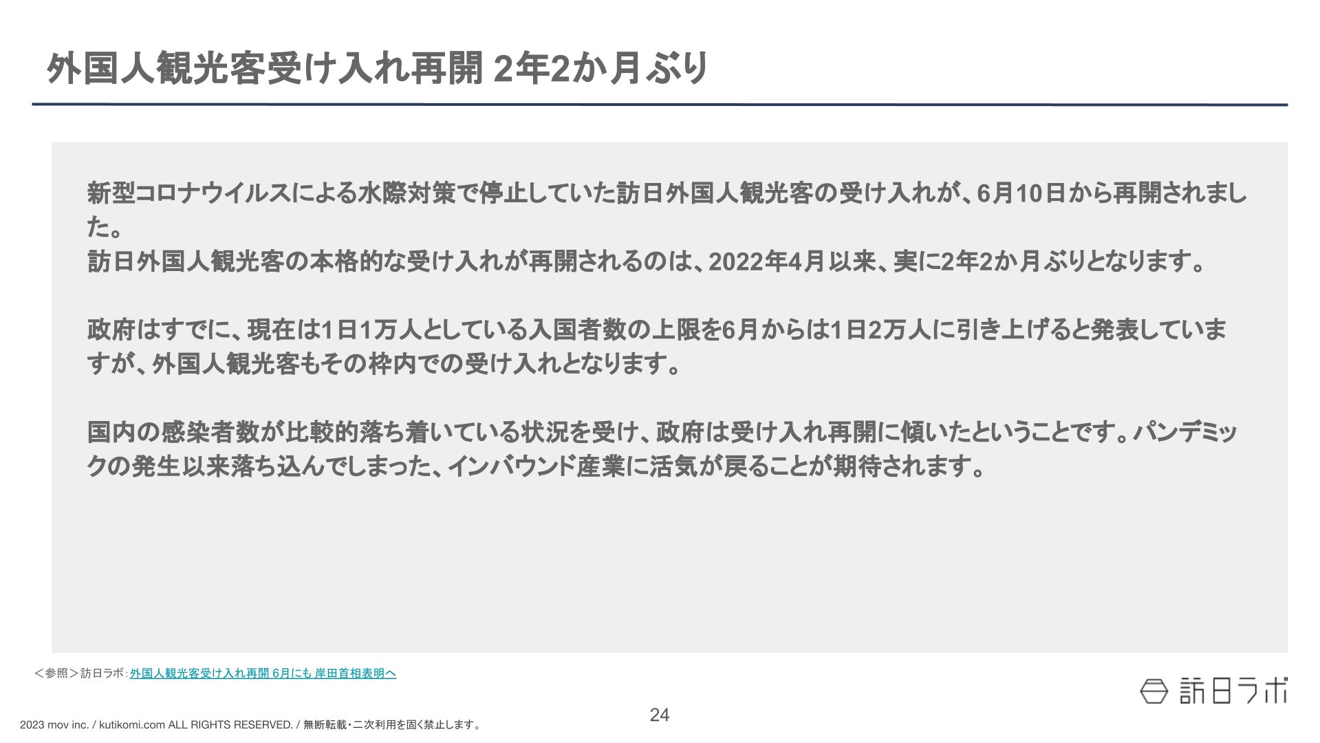 など、2022年以降のインバウンドの動向をまとめています。