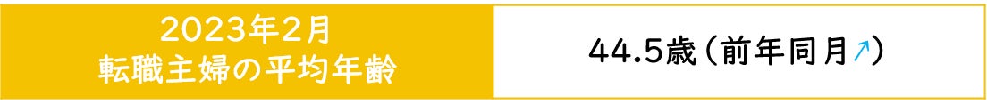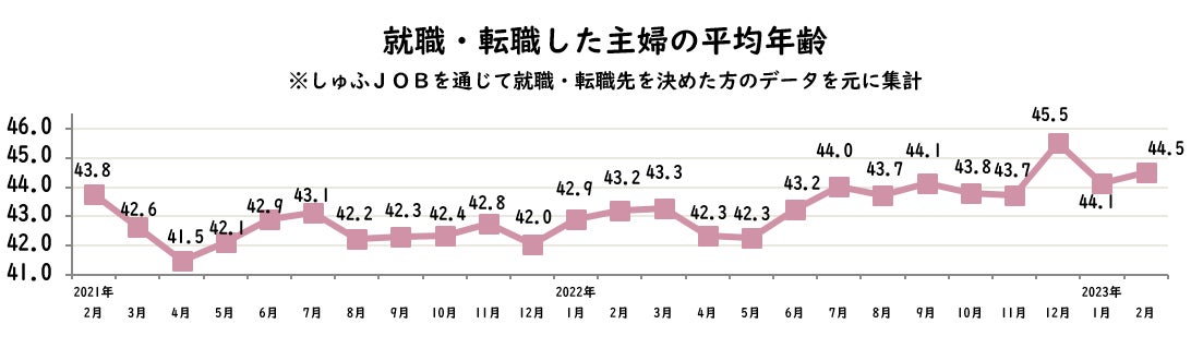 転職主婦の平均年齢は、前月比+0.4歳、前年同月比+1.3歳の44.5歳。