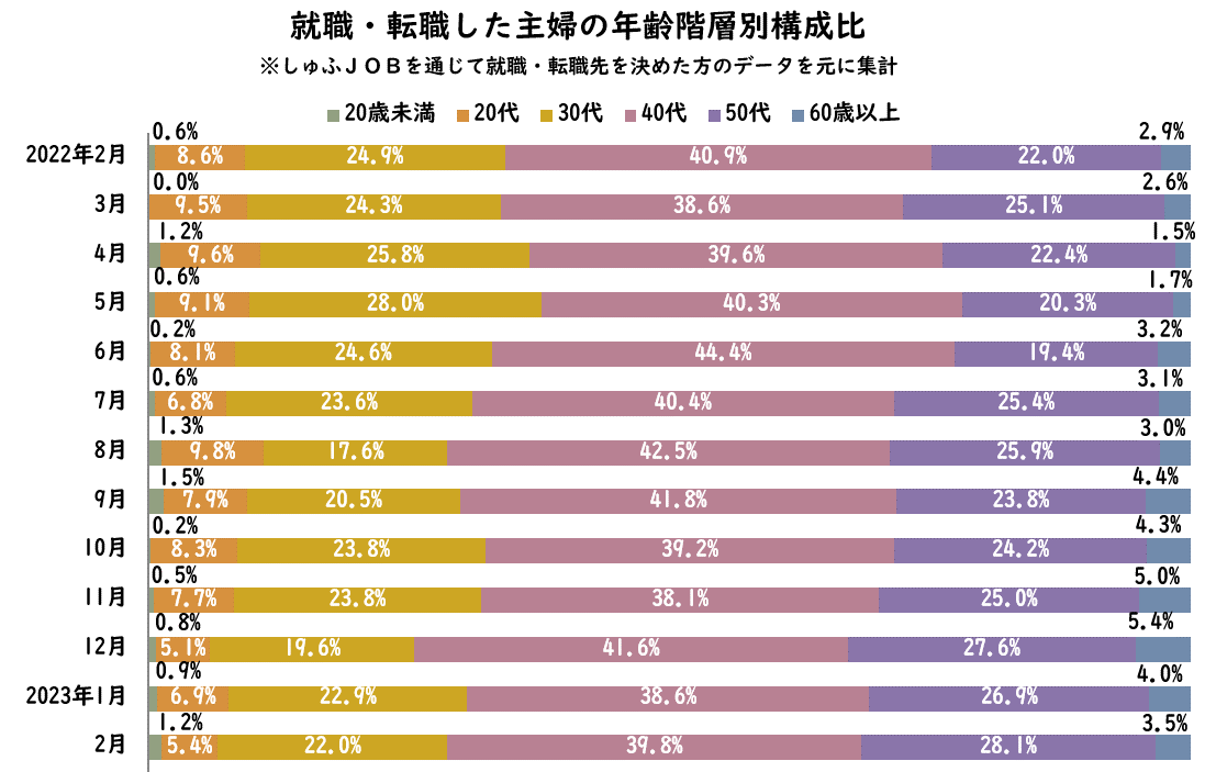 ビースタイルグループで主婦に特化した求人サイト『しゅふJOB』を運営する株式会社ビースタイル メディア(本社:東京都新宿区、代表取締役社長:石橋聖文)は、掲載求人から採用に至った採用データから算出した「転職主婦の平均年齢」を集計しました。
