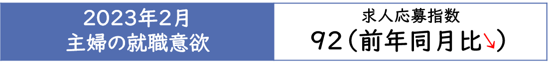 応募指数は2ヶ月連続で上昇した。経済活動の再開に伴い、2021年7月頃から応募数に比べ求人数の勢いが強い状態が続いていたが、1月、2月と応募数が高水準だったことが影響した。例年通りであれば、夏休み前まで応募指数は上昇し、主婦層を採用したい企業にとってチャンスが広がっていくとみられる。