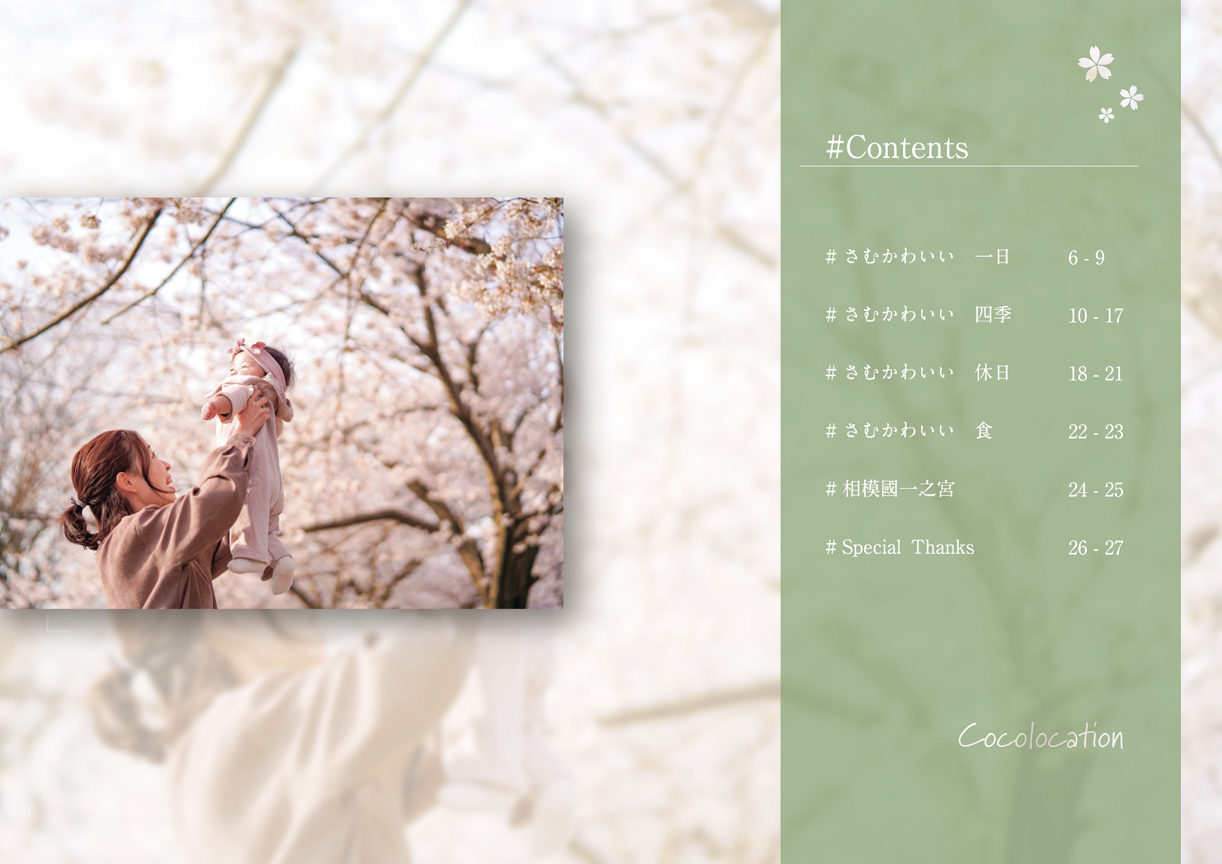 今回のフォトブックは、約3万件の投稿から、さむかわの1日・さむかわの四季・さむかわの休日・さむかわの食・寒川神社の5つのコンテンツに合った写真を51枚厳選し、町民も移住検討者も、寒川町の魅力を感じられる一冊に仕上げました。令和5年4月1日より配布を開始し、希望者をはじめ、移住促進用のプロモーションツールの1つとして活用していきます。