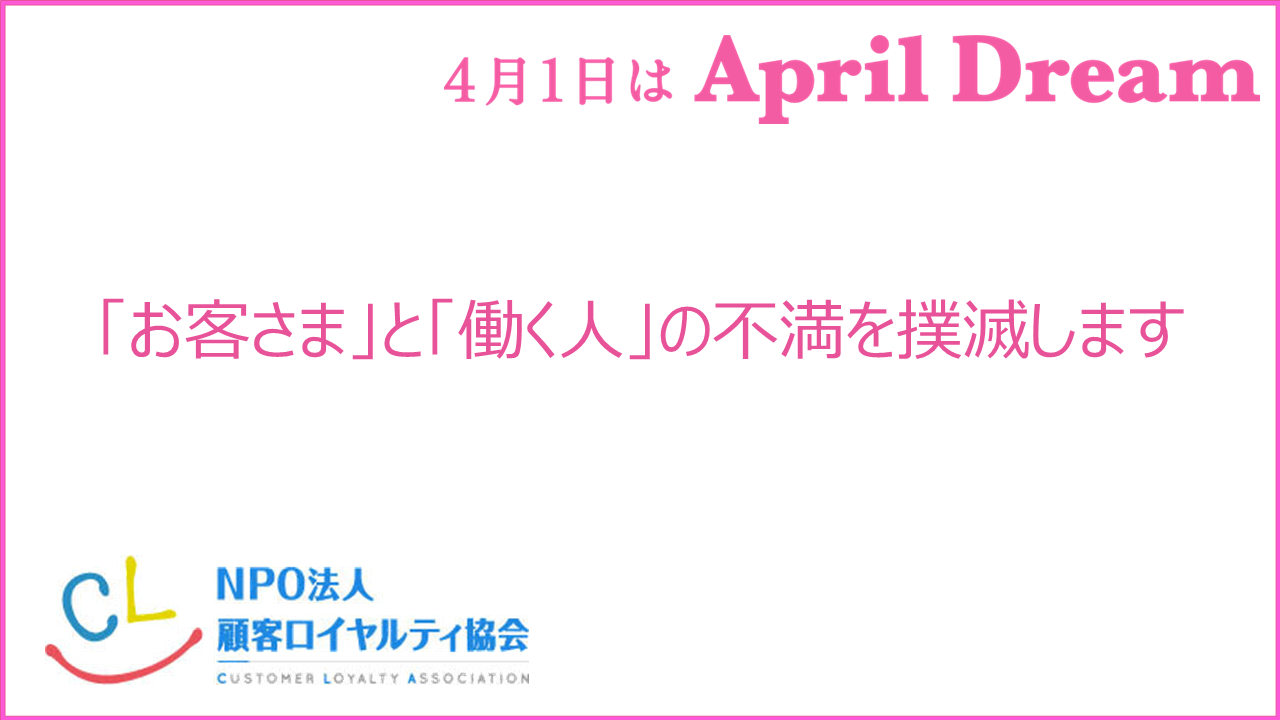 私たちは、4月1日を夢を発信する日にしようとするApril Dreamに賛同しています。このプレスリリースは「NPO法人顧客ロイヤルティ協会」の夢です。