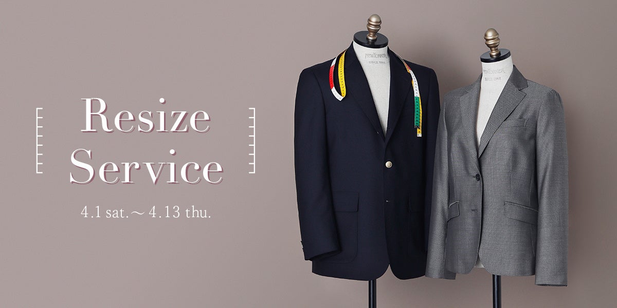 内容:上着袖丈、ボトムスのウエスト・裾丈の詰め・出しの無料サービス。