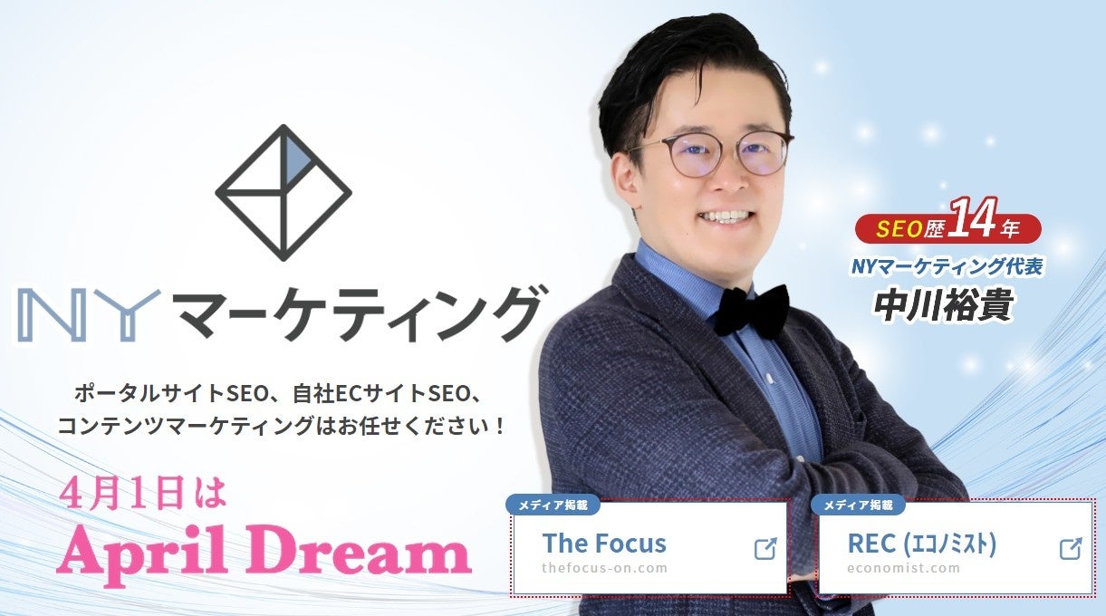 Webコンサルティングを行う、NYマーケティング株式会社(代表取締役:中川 裕貴)は、SEOを通して「良いモノを広め、経済の更なる発展」を実現します。コストパフォーマンスを追求したSEO事業で、クライアントに応じた戦略を提供していきます。