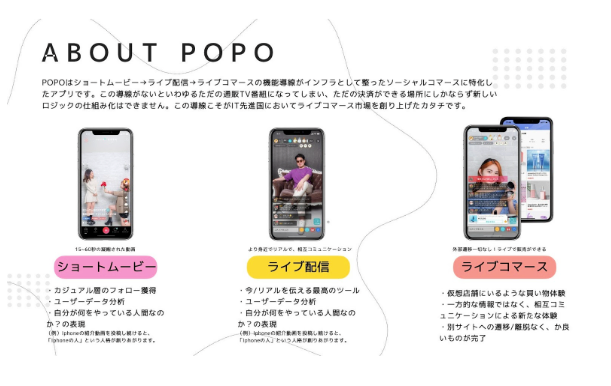 事業内容:ショートムービー&ライブコマースアプリ「POPO」の開発・運営