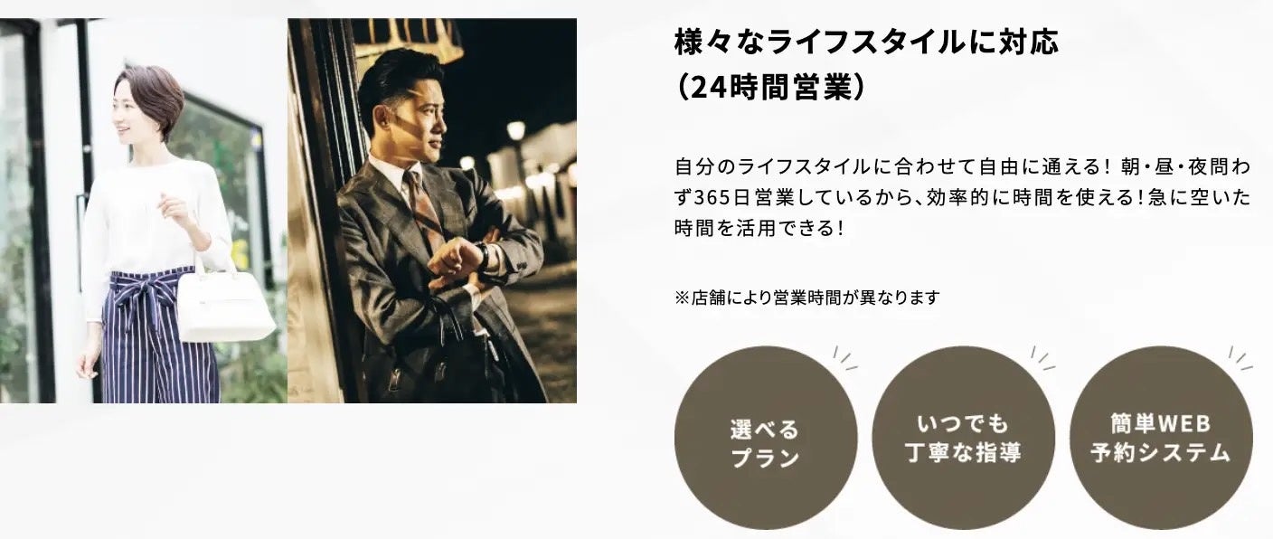 朝・昼・夜問わず365日営業しているから、効率的に時間を使える!急に空いた時間を活用できる!