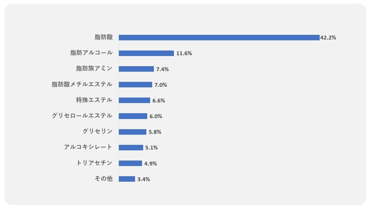 質問:製品に基づいて、どのセグメントが油脂化学市場をリードしていますか?