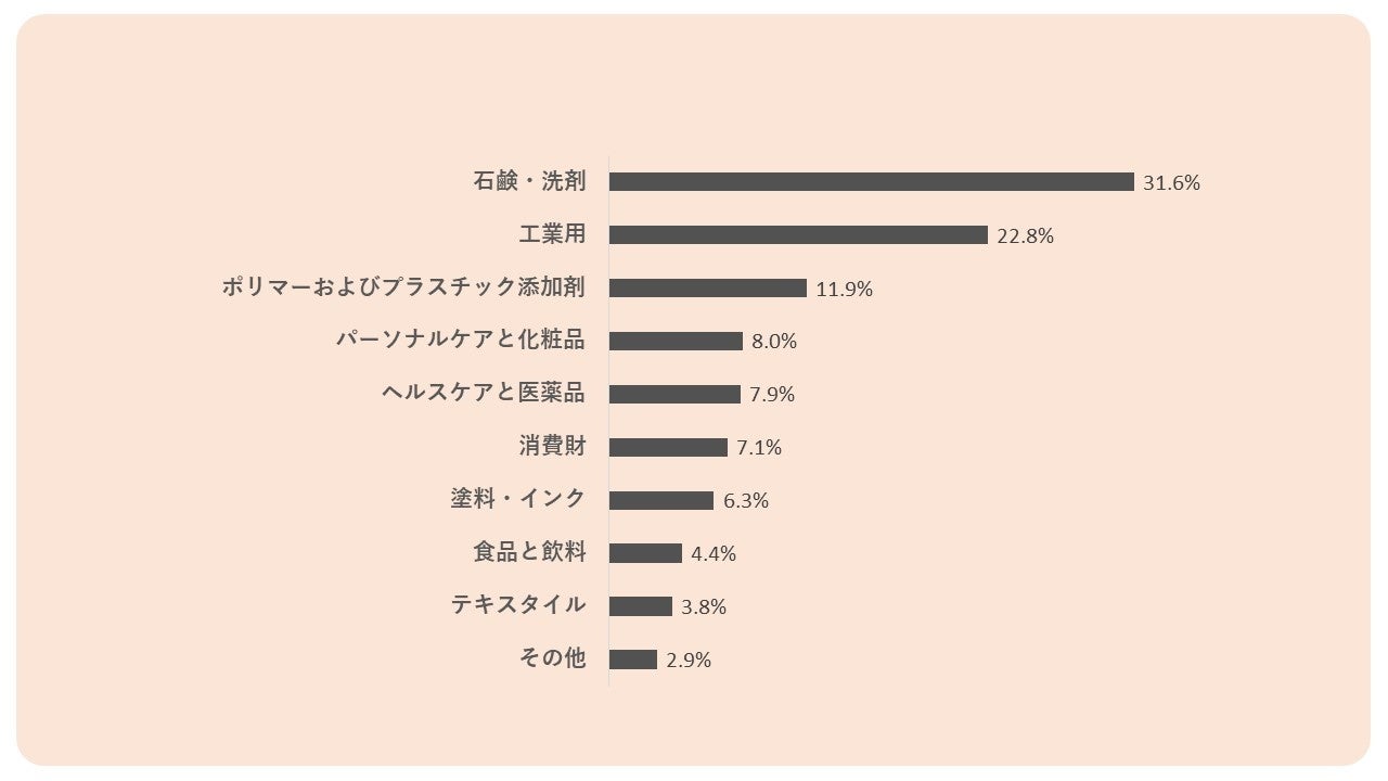 質問:油脂化学市場でより多くの市場シェアを持っているアプリケーションはどれですか?