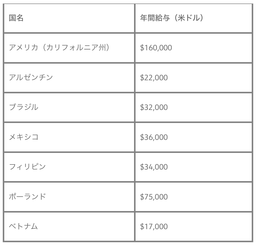 - 採用報酬国別比較 (経験8〜10年のフルスタックエンジニアの場合)