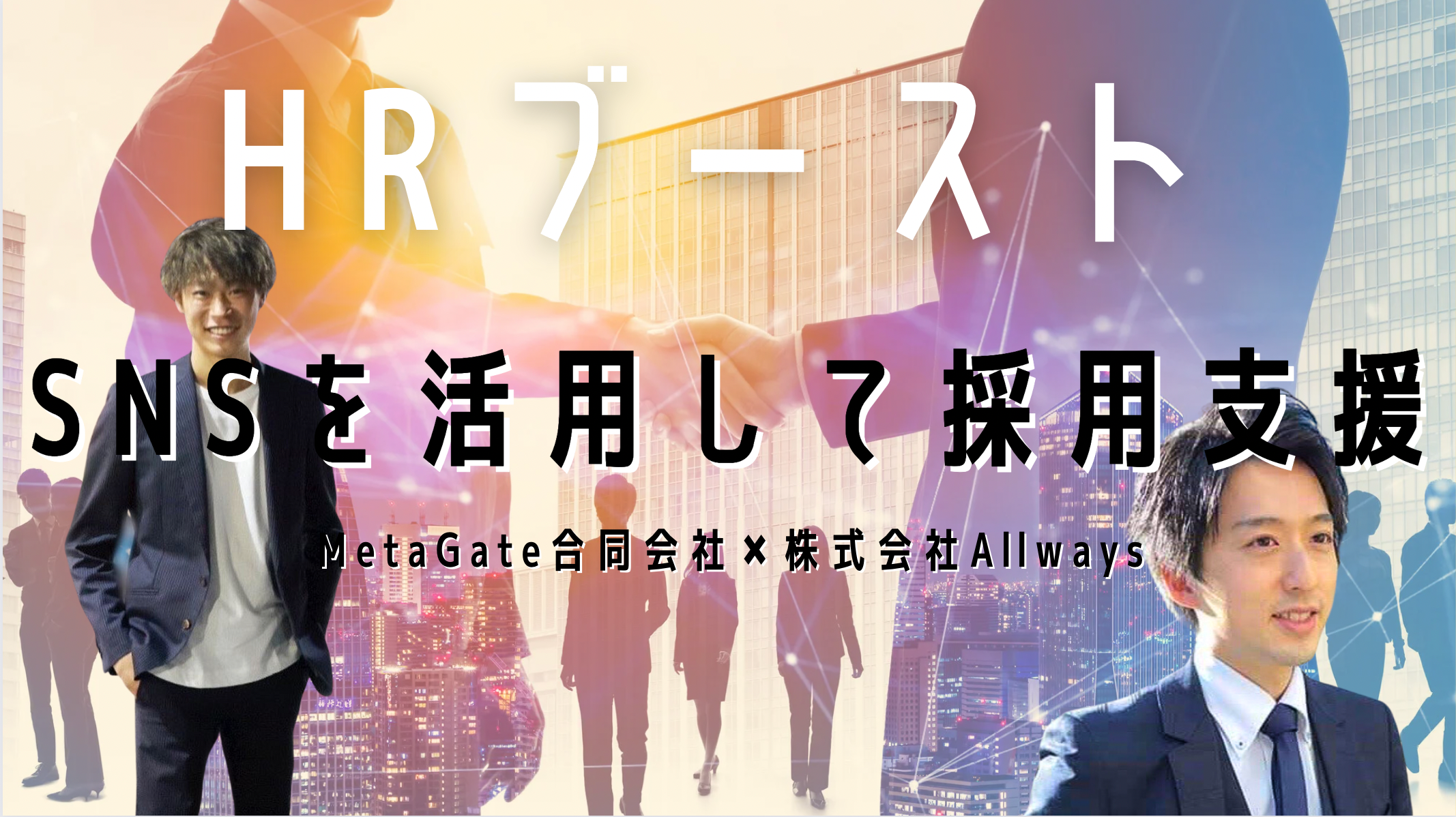 Instagram運用代行・支援を行うMetaGate合同会社は、採用人事コンサルティングを提供する株式会社Allways(本社:〒174-0072 東京都板橋区南常盤台1-11-6 レフア南常盤台101)と連携し、採用活動に特化したSNS運用代行サービスHRブーストをローンチしました。