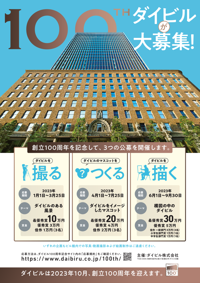 応募方法など本コンテストに関する最新情報や詳細はダイビル100周年記念サイト※をご覧ください。