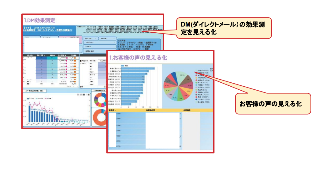DX推進を更に強化し、掲げたビジョンの実現に向けて取り組んでまいります。Google,Zoho等のBIツールを組み合わせ、可視化した情報(データ)を基にお客様満足度向上を目的とした施策をスピーディーかつ数多く実行できるビジネスプロセスを構築し、目まぐるしく変化し続ける市場環境とお客様ニーズに素早く対応していけるデータドリブン経営を実現してまいります。