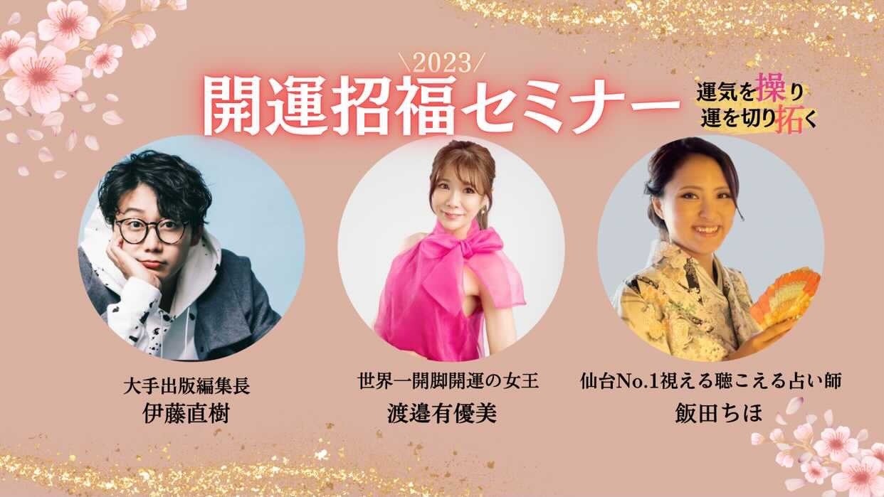 今回のイベントでは、編集者として数多の作家さんたちの秀逸なノウハウや知見を広く世に伝えてきた伊藤 直樹(いとう なおき)が強運を自負する渡邉と飯田の運気の操り方をこのイベントを通して紐解いてゆきます。